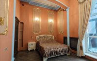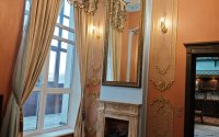 Спальня (Классицизм/Барокко) | Изысканный и Интимный. Пастельно-персиковые стены, золотой декор, лепнина, классический карниз, драпировка и балдахин. Создает ощущение будуара или королевской опочивальни с камином и скрыта потайной дверью в шкафу!