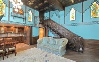 Индивидуальность и Смелость: Это жильё для человека с очень смелым вкусом, который не боится ярких цветов, сложных архитектурных форм (как сводчатый потолок и винтовая лестница) и нестандартных решений.