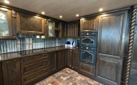 Роскошь и Драматизм: Интерьер выполнен с явной ставкой на эффект и богатство. Используются дорогие материалы (натуральное дерево, лепнина, витражи), массивные люстры, сложный декор и насыщенные цвета