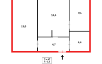 Общая площадь 48 кв.м. кухня 8.8
