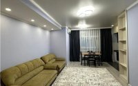 Квартира полностью меблирована. Имеется духовой шкаф, холодильник, стиральная машина, кондиционер, кровать, диваны, кресло, большой вместительный шкаф а также гардеробная на входе.
