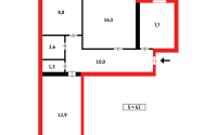Квартира общей площадью 65м². Кухня 8.1м²