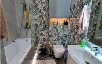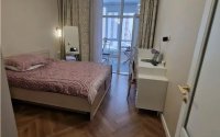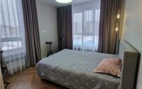 Выполнен свежий ремонт, с использованием качественных материалов. Квартира полностью укомплектована новой мебелью: диван, кровать, шкафы, туалетный столик, гардеробная, прихожая, кухонный гарнитур, обеденный стол и стулья. Вся бытовая техника новая — посудомоечная и стиральная машины, холодильник.