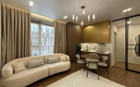 Продаётся стильная евродвушка в жилом комплексе бизнес-класса «Кеменгер». Дом от надёжного застройщика, выполнен качественный современный ремонт, высокие потолки.