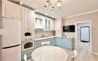 Стильная 2-комнатная квартира 65 м² с дизайнерским ремонтом, встроенной кухней, кладовкой и кондиционером, не угловая, окна во двор, тихий двор, полностью меблирована, рядом престижные школы, сады, супермаркеты и поликлиника в центре Юго-Востока — 6 этаж, дом 16.