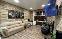 На цокольном этаже имеется большое помещение под разный вид деятельности, большая кухня, сауна и выход на крытую террасу с огороженной зоной барбекю. В квартире произведен качественный ремонт, все материалы: мебель, техника и сантехника высокого качества. Терраса оснащена теплым полом, что позволит в прохладное время года собираться большой компанией, в дополнение ко всему во дворе имеется два гаража. Показ по предварительному звонку в случае не дозвона писать на Ватсапп. Гарантирую безопасную сделку, помощь с оформлением ипотеки.