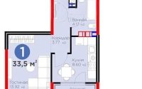 Площадь квартиры — 33,5 м², состояние — бизнес-комфорт. Современная и удобная планировка, панорамные окна дают много естественного света. Дом с качественными инженерными решениями и благоустроенной территорией.