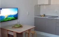 Квартира полностью укомплектована: новая кухонная мебель, диван, смарт-ТВ, подключён интернет, есть стиральная машина и холодильник.