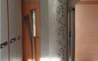 В коридоре стены частично оформлены фигурной укладкой керамогранита.