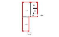 Общая площадь — 44,5 м²