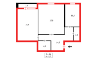 🛏️ Спальня 22 м² с лоджией (застекленная)