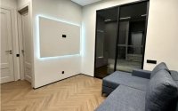 Ремонт выполнен из качественных материалов: немецкий ламинат Hoxen «ёлочка», смесители скрытого монтажа Raglo, электрика выполнена профессионально с проходными выключателями.