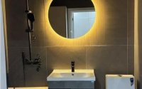 Санузел с качественной влагозащитой и декоративным кафелем.