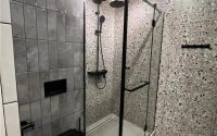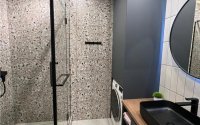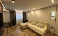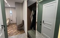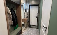 В квартире выполнен дизайнерский ремонт. Был произведен полный демонтаж до кирпича. Электропроводка медная с установкой автоматических выключателей на каждую группу потребителей и реле напряжения. Сантехническая разводка пластиковая. Лучевая система водопровода. Радиаторы отопления биметаллические. Пол на стяжке. в коридоре, сан узле и кухне напольное покрытие керамогранит, установлены теплые полы. В зале ламинат, укладка ёлочкой. Выполнена облицовка стен многослойным гипсокартоном для снижения уровня шума. TV зона оформлена с использованием декоративных панелей. Потолок из гипсокартона с трековым светом и парящим эффектом. Пластиковые 5-камерные окна. Кухонный гарнитур со встроенной техникой, вся мебель встроенная, в санузле душевая кабина, инсталляция и скрытая ниша для водонагревателя. Установлен кондиционер. Бронированная входная дверь.
