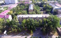 В подъезде выполнен косметический ремонт с установкой пластиковых окон. Фасад дома также обновлен. Слева от дома торговый дом Абзал, справа площадь независимости, напротив ЦУМ и вход в центральный парк.