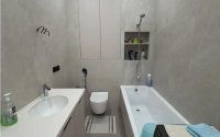 Полы — ламинат, санузлы — керамогранит, тёплый пол в уборной.