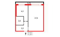 Квартира площадью 32 м², с большим балконом по всей ширине квартиры (зал, кухня)