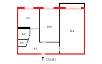 Общая площадь 44,6кв.м/кухня 5,4кв.м.