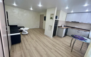 В квартире выполнен капитальный современный ремонт. Кухня-студия совмещена с залом, отдельно есть небольшая спальня. Проводка медная, установлены новые автоматы. Межкомнатные двери современные и качественные. В ванной и коридоре — тёплый пол.