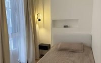 Кухня-студия со встроенным гарнитуром, новая мебель и техника. Сантехника, есть гардеробная и кладовка. Витражные окна, потолки 3 м, двери скрытого монтажа 2,5 м, установлен кондиционер.