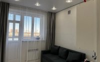 В квартире выполнен новый ремонт, остаётся вся мебель и техника, кроме телевизора. Балкон остеклён и обшит бамбуковыми панелями с встроенным освещением. Возможен небольшой торг. Оплата — только наличными.