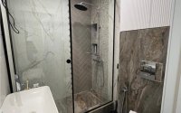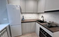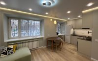 В квартире выполнен новый дизайнерский ремонт. Электропроводка медная с установкой реле напряжения и автоматическими выключателями, сантехническая разводка пластиковая, радиаторы отопления биметаллические с регуляторами. Натяжные потолки с парящим эффектом и большим количеством искусственного света, стены выровнены и окрашены, пол на стяжке, напольное покрытие ламинат. В коридоре и санузле теплые электрические полы. Пластиковые 5-камерные окна с установленными решетками. Кухонный гарнитур со встроенной техникой. Установлен кондиционер, полностью укомплектована всей необходимой техникой и мебелью. В санузле инсталляция и душ кабина.