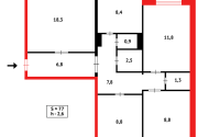 Общая площадь 77,7 кв. м., кухня 8,7 кв.м., планировка раздельная.