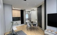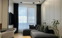 Квартира с дизайнерским ремонтом от студии «ADELFI» и качественной техникой BOSCH: духовка, индукционная плита, микроволновая печь и посудомоечная машина. Телевизоры SAMSUNG 75" и 60", две сплит-системы HISENSE. Есть электронный замок KAADAS, видеокамера EZVIZ, датчики протечки и пожара, система «умный дом» — управление светом, кондиционером, шторами и техникой голосом через Алису. Планировка: кухня-гостиная, две спальни, гардеробная, два санузла (душ и ванна). Стены из панелей Egger, полы — доска Quick Step, мебель и фурнитура — Egger и Blum, текстиль и мягкая мебель на заказ.