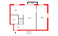 - Общая площадь 44 кв. м, кухня 6 кв. м.