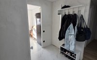 В зале, детской комнате, коридоре и кухне сделан ремонт. Осталось в этих комнатах поклеить обои и положить плинтус. На полу, стенах и потолке шумоизоляция. Пол сделан качественно: шумоизоляция, цемент с балластом, наливной пол, подложка, ламинат. Межкомнатные двери новые, входная дверь новая, новые выключатели, розетки, электропроводка. На потолке шумоизоляция и натяжной потолок с софитами. Только в санузле требуется ремонт. В коридоре и на кухне красивый белый керамогранит, электрический подогрев пола.
