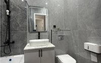 Столешницы под чашами в санузлах также из искусственного камня.