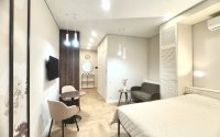 телевизор, студия, санузел совмещенный, платная автостоянка рядом, пластиковые окна, с бытовой техникой, нельзя с животными, холодильник, кондиционер, стиральная машина, лоджия, не угловая, можно арендовать паркинг, договор, кабельное ТВ, Wi-Fi