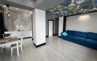 В квартире выполнен ремонт от известного дизайнера. Был произведен полный демонтаж до кирпича. Электропроводка медная с установкой автоматических выключателей. Сантехническая развода пластиковая, стояки отопления спрятаны в шахте со съемными панелями. Многоуровневый потолок из гипсокартона с подсветкой, комбинированная отделка стен. Лаги перестелены, напольное покрытие ламинат. Кухонный гарнитур с каменной столешницей и встроенной техникой фирм Smeg и Franke. Совмещенный санузел с инсталляцией и душ кабиной. Установлен кондиционер, видеонаблюдение и сигнализация. Вся техника и мебель (практически вся встроенная) остается при продаже.