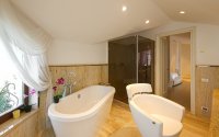 собственный санузел с душем и джакузи