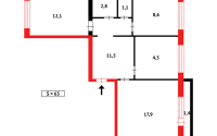 Улучшенная планировка, общая площадь 65 кв.м, просторная кухня площадью 9 кв.м.