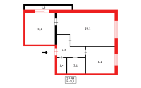 Общая площадь 49кв.м, кухня 8кв.м, санузел совмещенный, пластиковые окна, большая застекленная лоджия, в квартире есть гардеробная/кладовая, отгороженный тамбур на площадке.