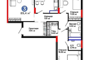 Площадь 88,6 кв.м, этаж 3/12. Окна на две стороны. Шумоизоляция Acoustic Pro, энергосберегающие окна (Германия). Магнитные замки на дверях, сантехника чешского производства.