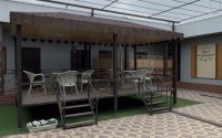 Сыртқы бөлікте 5-кабинка жаздық алаңы Кухня,Жұмысшылар бөлмесі,Администратор кабинеті орналасқан.