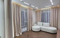 Дизайнерский ремонт, вся мебель из МДФ, двери 2.20 с фрамугой до потолка, елочка 34 класса, сантехника скрытого монтажа, инсталляция и бытовая техника.