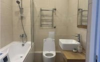 Оптимальная планировка: светлая и просторная гостиная-кухня студия (32 кв. м. ), две спальни (19, 5 и 17 кв. м. ), кухня оборудована необходимой техникой. Имеется два санузла (4, 7 и 3 кв. м. ), просторная ванная комната с большой ванной, что поможет расслабиться после утомительного трудового дня. Второй санузел для детей.