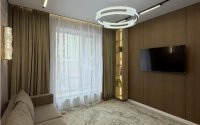 Квартира не угловая, с высокими потолками. Выполнен свежий ремонт в современном стиле. Установлены смарт-замок и пластиковые окна. Встроенная мебель и техника остаются: холодильник, плита, духовка, вытяжка, микроволновая печь, стиральная машина. Квартира полностью укомплектована — «заходи и живи».