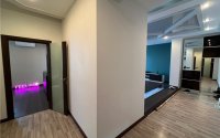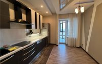 В квартире выполнен дизайнерский ремонт. Электропроводка медная, с установкой автоматических выключателей на каждую группу потребителей. Сантехническая разводка пластиковая, радиаторы отопления биметаллические с регуляторами. Комбинированная отделка потолка с большим количеством софитов. Стены выровнены и оклеены обоями, в кухне декоративная отделка. Напольное покрытие ламинат и керамогранит с установленными теплыми полами в зоне прихожей, сан узле и кухне. Декоративная ниша с камнями и подсветкой в полу в зале. Все мебель встроенная. В спальне гардеробное помещение. Установлено 2 кондиционера. Кухонный гарнитур со встроенной техникой и подсветкой рабочей зоны. В санузле сантехника фирмы groje.