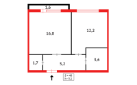 Общая площадь 39.8 кв.м. Кухня 12.2. кв.м.