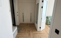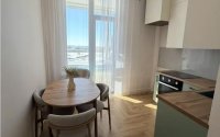 Квартира с качественным ремонтом: потолки высокие, стены и пол выровнены, обои под покраску, сантехника GROHE, встроенная мебель из МДФ и техника (духовой шкаф, вытяжка, посудомоечная машина). Двери 2,2 м, установлены датчики протечки, медная проводка и автомат Шнайдер.