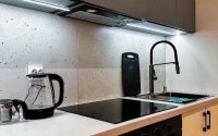 – Полностью оборудованная кухня: варочная панель, микроволновка, холодильник, чайник