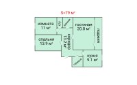 Просторная квартира площадью 79 м² в доме 2018 года постройки.