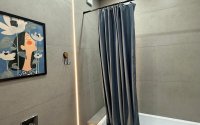 душа, мыло, зубные щетки, фен.