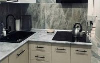 В квартире остаётся вся необходимая техника и мебель: стиральная машина, прихожая, кухонный гарнитур, титан (водонагреватель), духовка, плита и телевизор — можно заехать и жить.