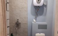 Санузел с душем, установлена вытяжка.