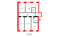 Общая площадь квартиры 90,9кв.м, кухня 11,4кв.м